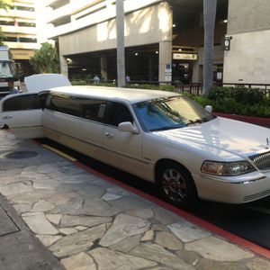 空港からワイキキは混載車ですが、帰りはリムジンで必ず迎えにきてくれます。