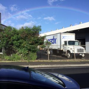ワイキキ近くになり雨が降り出し直ぐ晴れレインボーに歓迎を受けました(^○^)