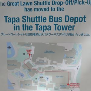 ヒルトンビレッジ内の送迎場所が、グレートローンからグランドアイランダー1階に変更になったようでした。