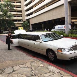 10分以上遅れてる場合は電話を下さいとの事でしたが、ハワイで通話出来る携帯電話を持っていないのでどうしようかなぁと思っていたら白いリムジン登場!
