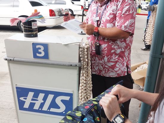 空港を出てすぐ、HISのカウンターは目に留まりますし、案内もスムーズです。
