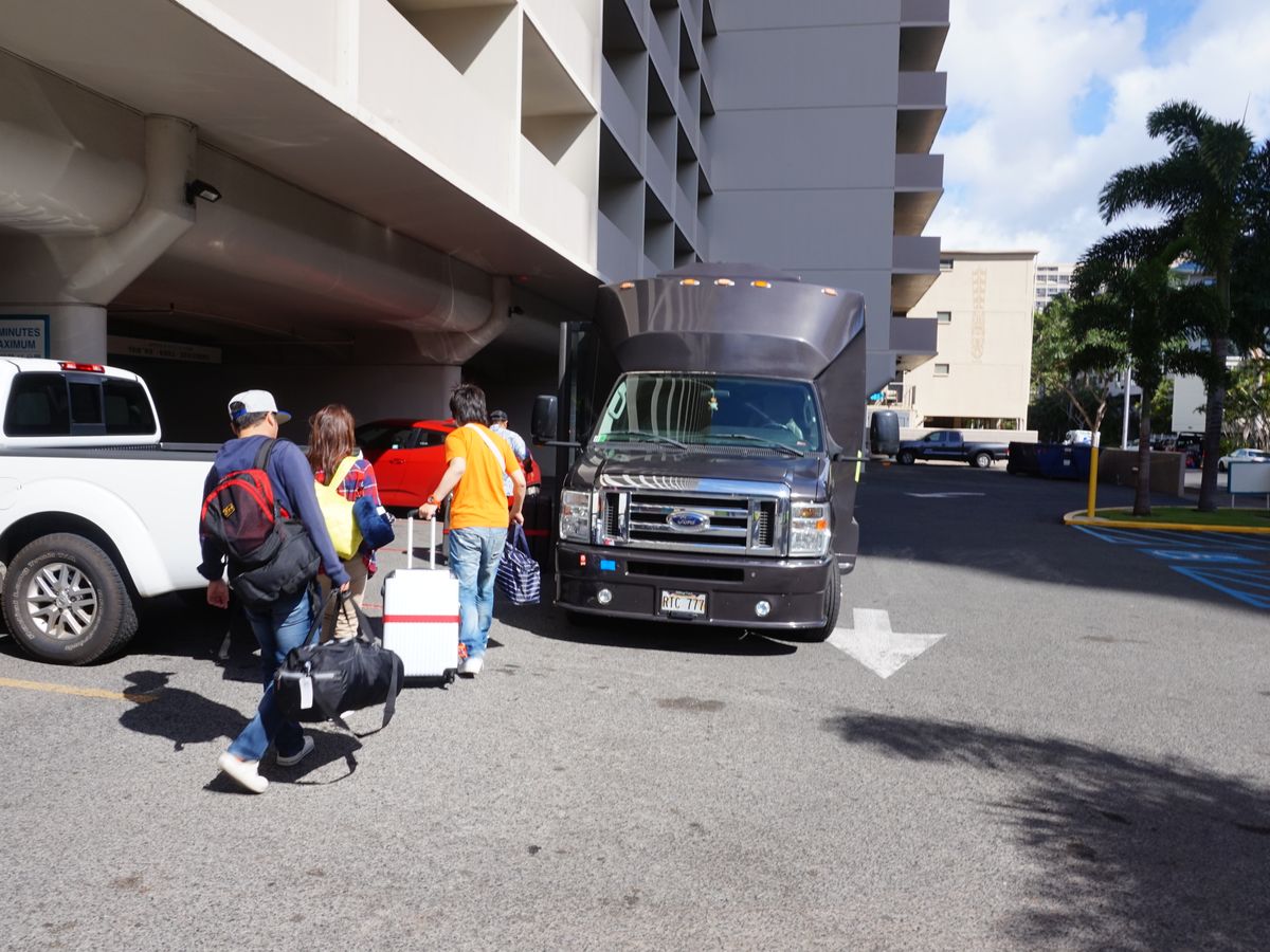 集合場所などの案内も分かりやすく、団体送迎にありがちな、色んなホテルを経由しすぎて凄い時間がかかる、というわけでもなく、スムースでした。おそらく近しいホテルの客を集めているのかな。ストレスなく、思ったよりだいぶ早くワイキキに到着しました。
