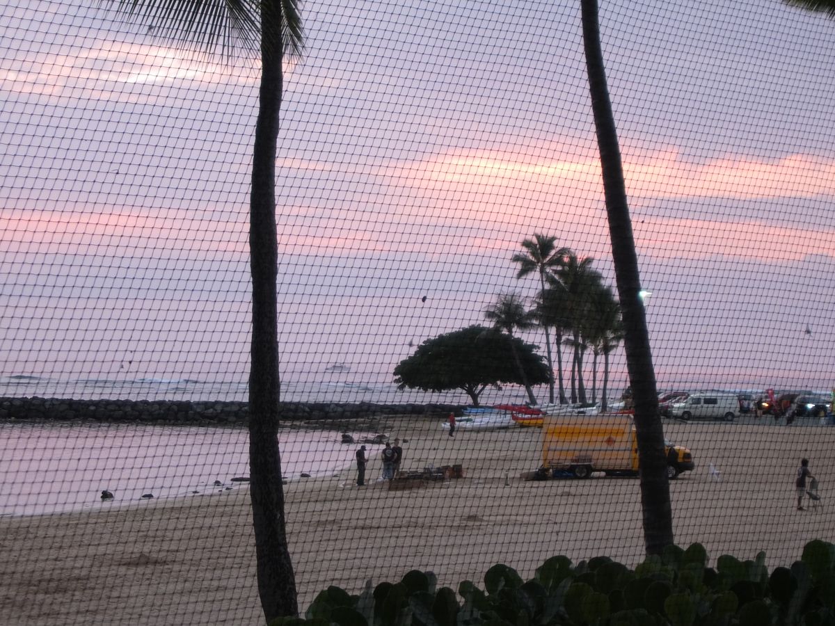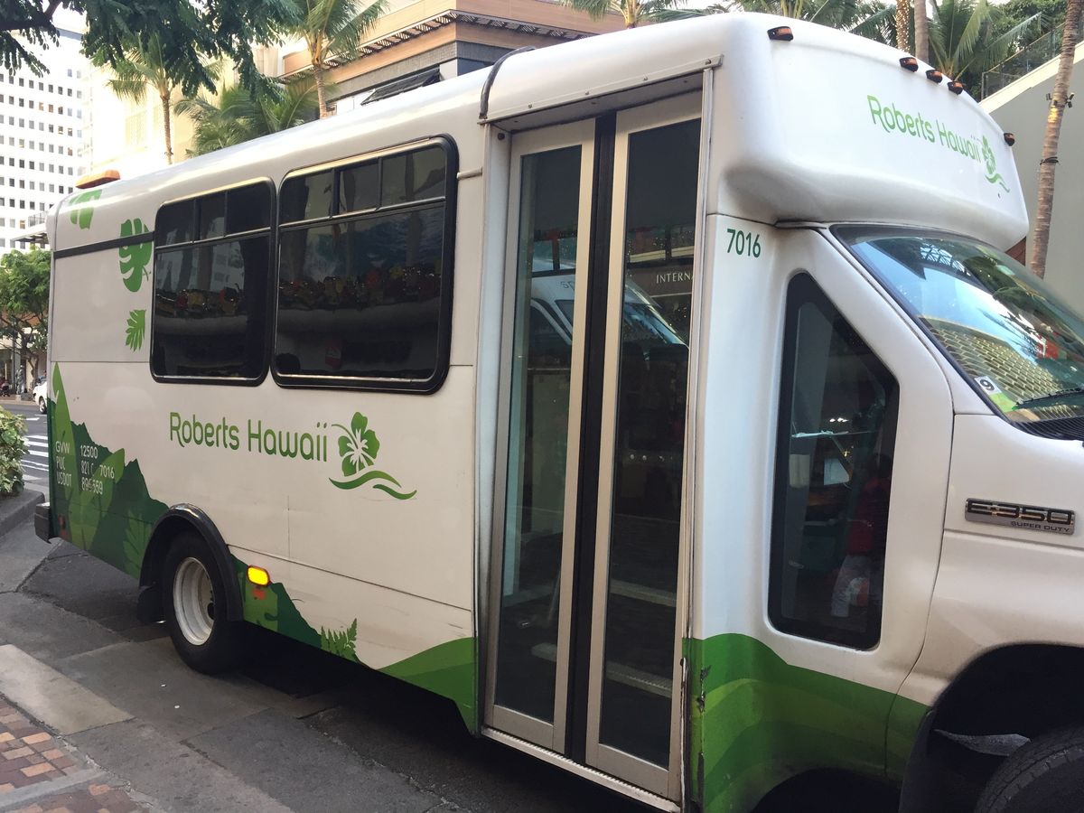 ホテルがモダンホノルル(ワイキキのはずれ)で、本当は空港から一番近い場所でしたが、ヒルトンやワイキキ中心部の客を送ってから、30分以上掛けて最初の私たちのホテル(空港方面)にやっとたどりつきました。