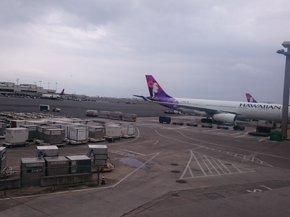 前回、ハワイに来たときも帰りはHISのお迎えで空港まで行き、リムジンが来てビックリしたので、今回はどんな車で来るかなと思い、申し込んでみました。約束の時間より10分ほど早めにマイクロバスで来てくれたのですが、他に乗客はいなく、一人でバスに乗せていただき、早めに空港に着いたためにバッグドロップの長ーい列に並ぶことなくチェックインできて助かりました。