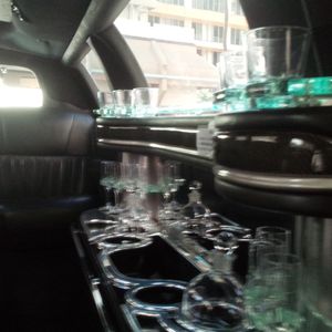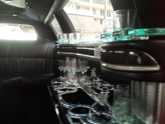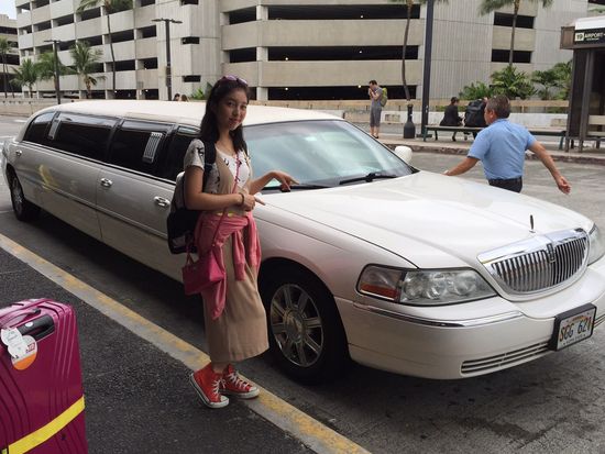 出発日の朝、女子2名でホテルのロビーで待っていたところ、真っ白なリムジンが到着!いったい、どんな人が利用するのかと見ていたら、突然、私たちの名前が!間違いかと確認するも、OKだと言うので、乗せていただきました。車内にすでに乗っていた人たちと、大喜び。