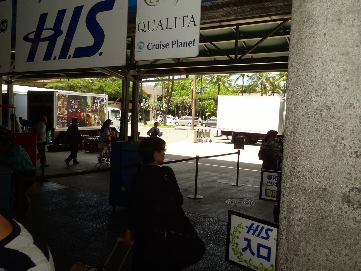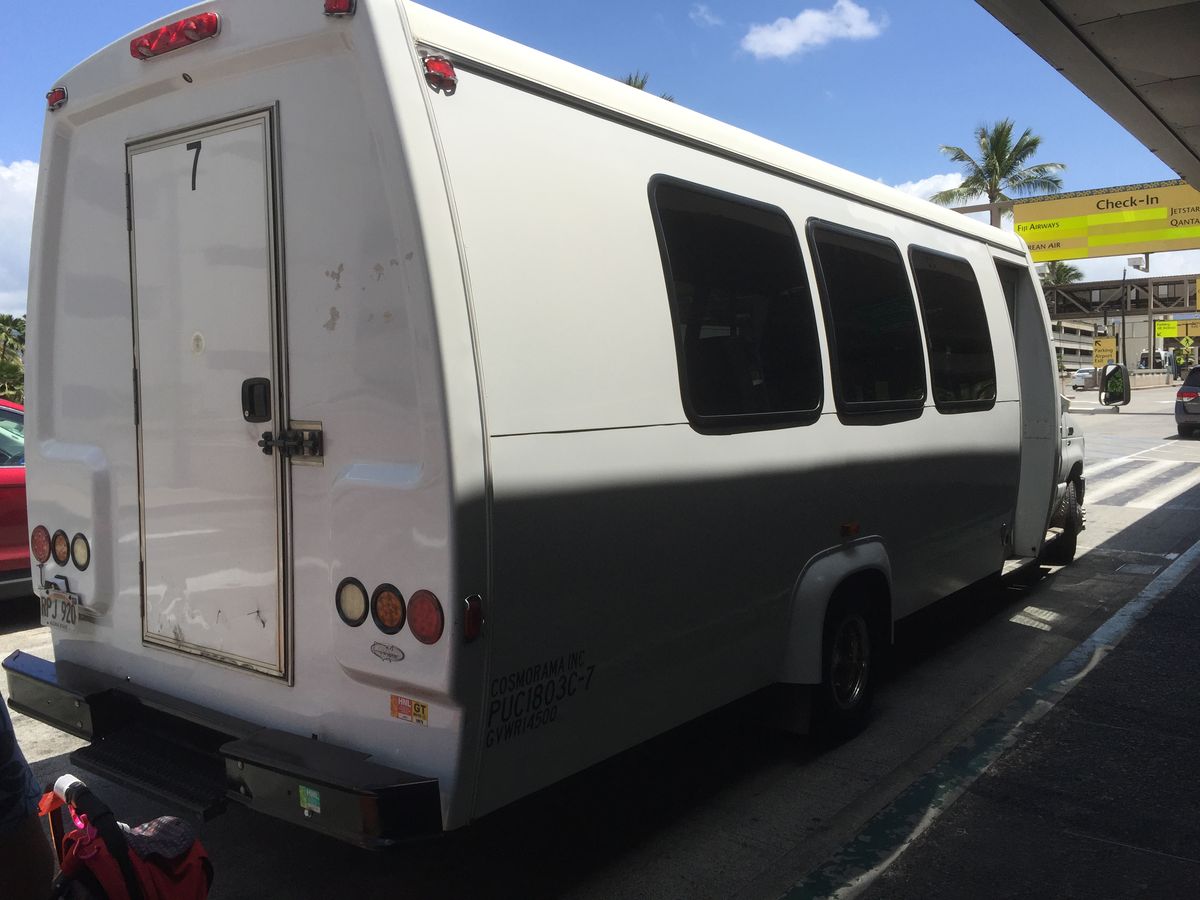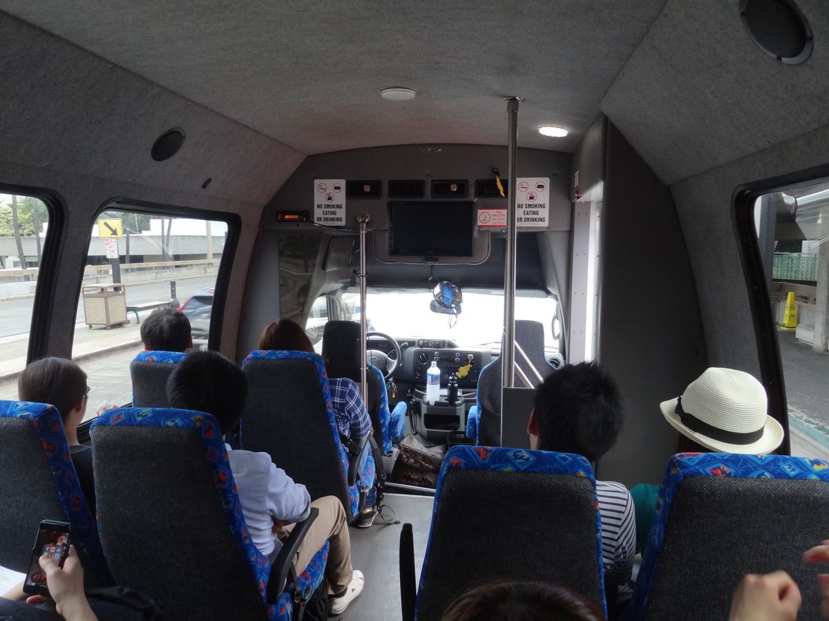 ホノルルのホテルから空港へ。安くて利用しやすい点でOK。しかし、日本人には何か少し物足りなさが残るのはなぜでしょう。