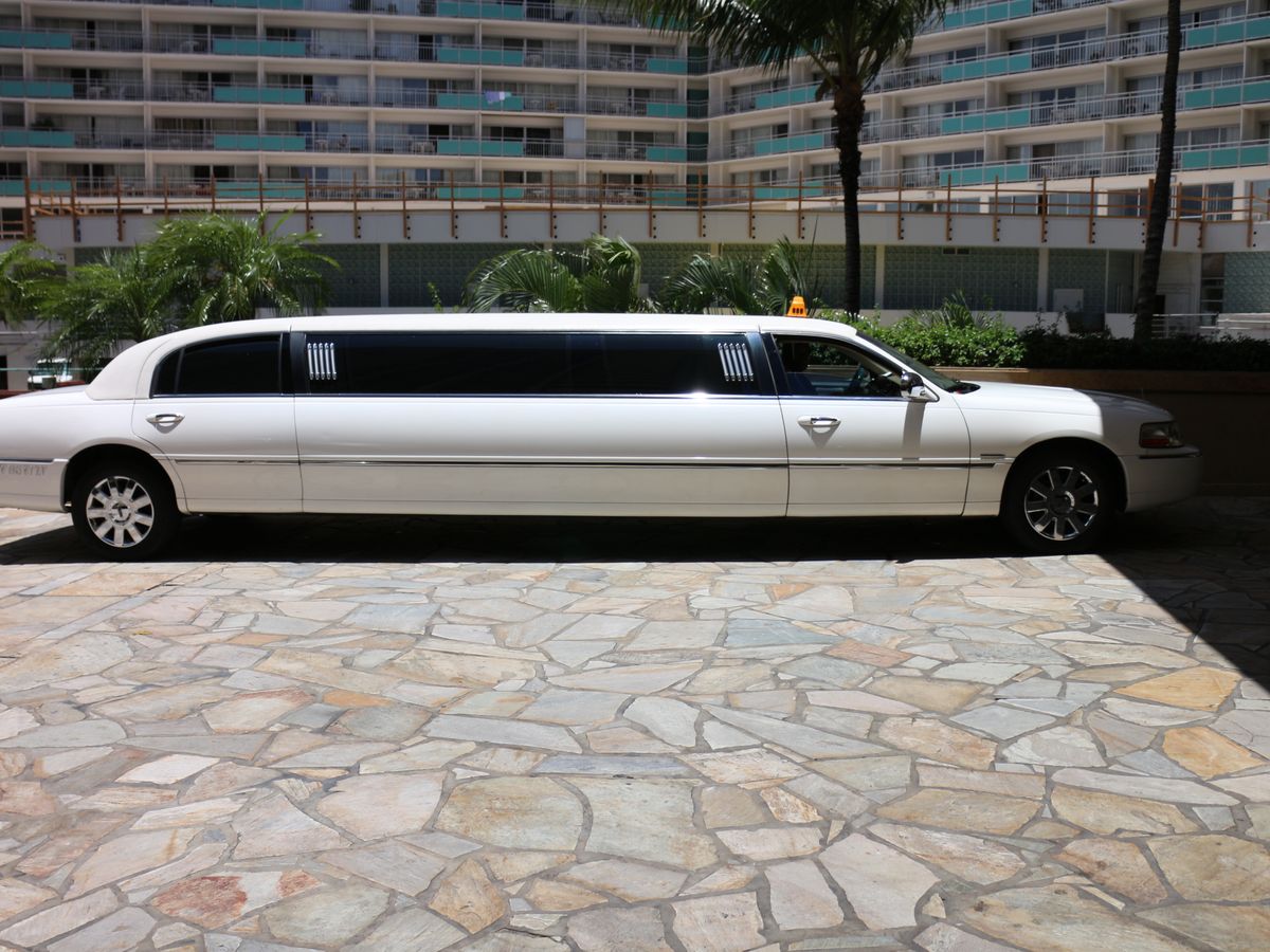 ハワイ滞在中何度もリムジンタクシーを見かけたので、その運転手さんに頼んで写真を撮らせいただきましたが、運が良ければリムジンタクシー捕まえることもできたし、わざわざこんな高い料金を払って乗る必要ないと思います。