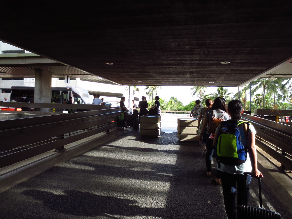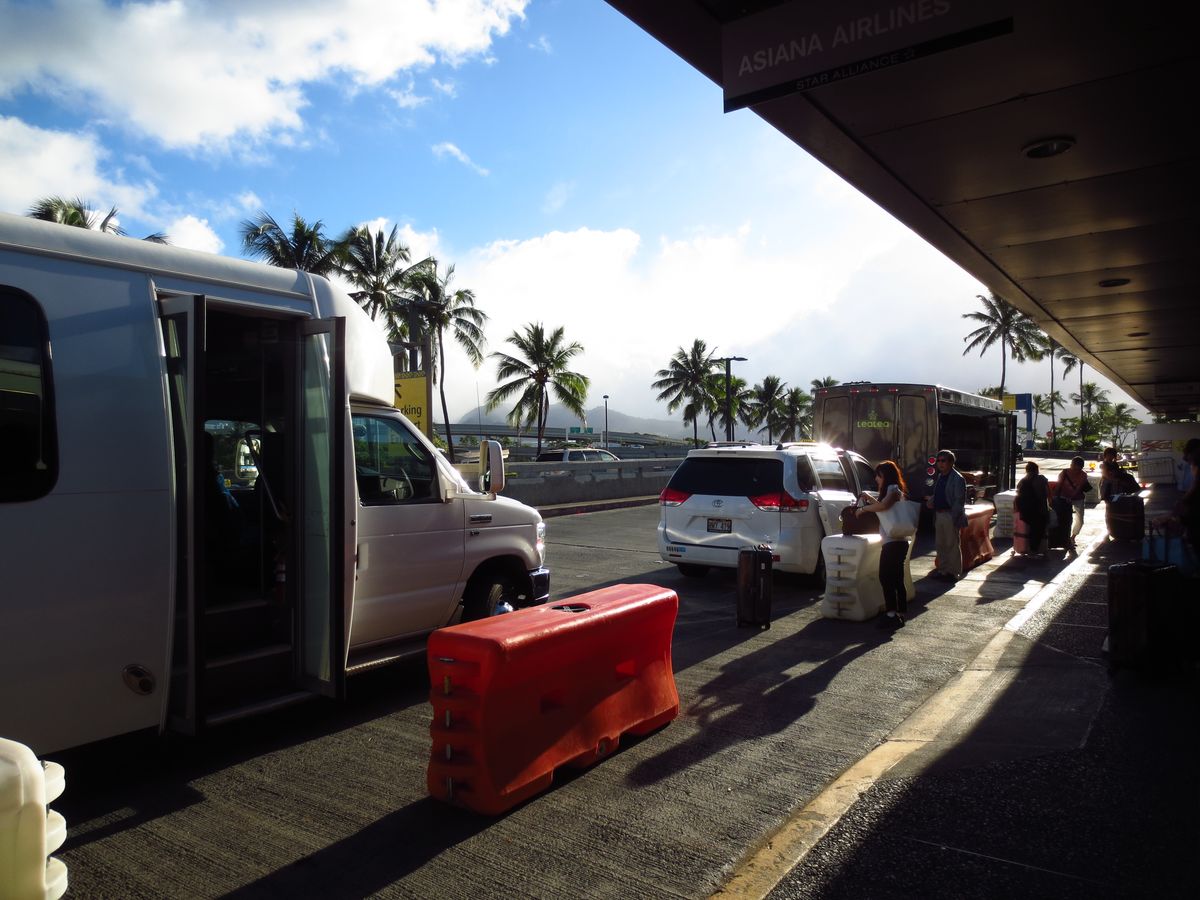 ホノルル空港団体出口から出て、受付カウンターはすぐ分かりました。HISのパックツアーのお客さんと同乗でいくつかホテルを回りましたが、比較的スムーズで、この価格なら、十分です。