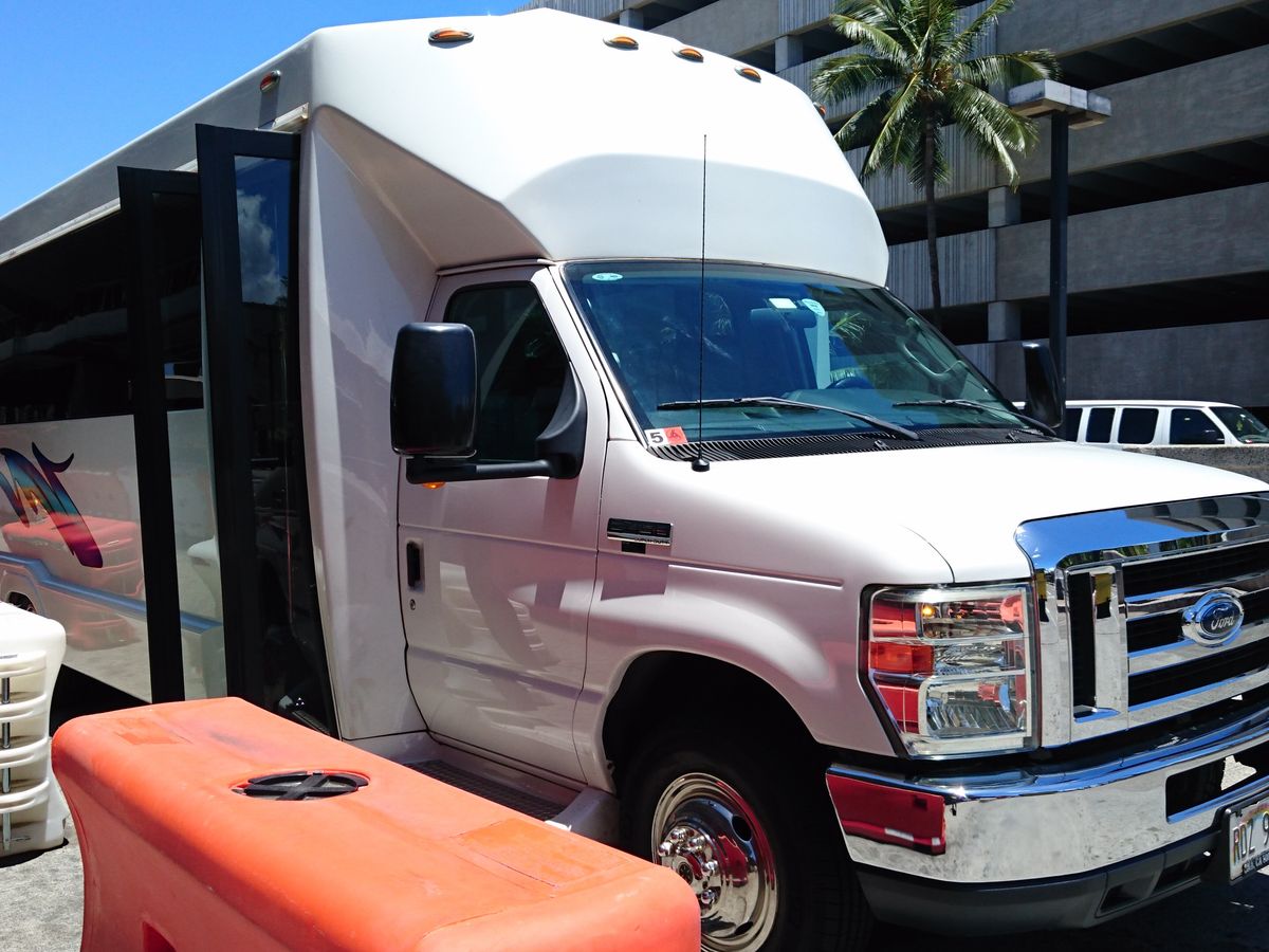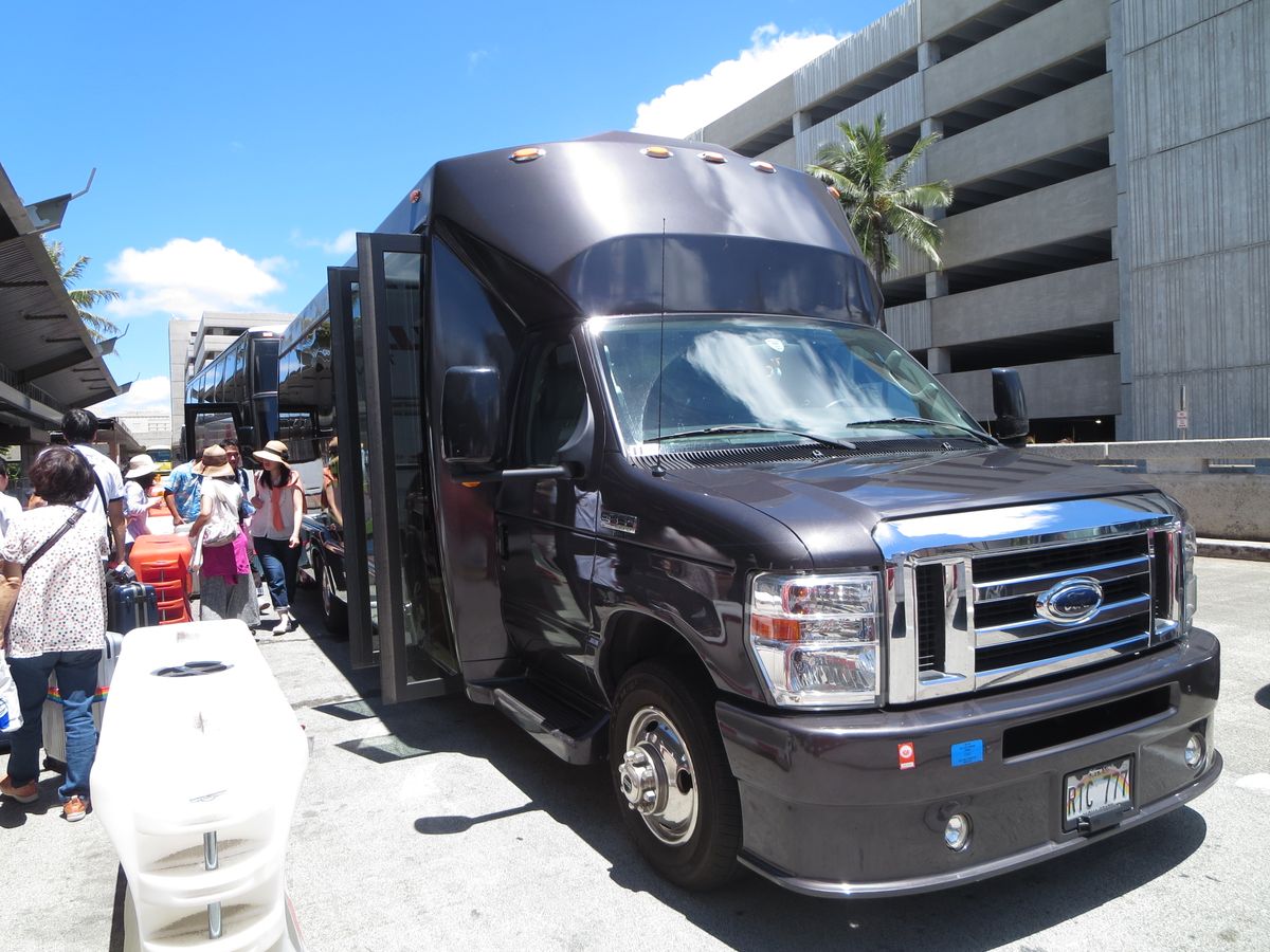 ハワイへ来るときはいつも利用させていただいているので、リピーターにとってはとてもとてもスムーズでした。しかしいつものチェックカウンターにはHISさんのロゴがなくのぼり旗もなかったので本当にここで良いか一瞬戸惑いました。が、カウンターの人が日本人でしたのでとても安心して尋ねることができました。到着してすぐに日本人のいらっしゃるあんたはとても安心できます。到着時に1名だけ人数を追加することもすぐに電話で対応していただき大変助かりました。いつも同着するときに白い貝殻のレイをいただきますが、荷物になるので特になくてもいいかなぁと思います。それよりも実用的な小さなミネラルウォーターのボトルとかの方が助かります。いつも大満足ですがリピーターとして少し辛口で1つ星を減らしましたが、いずれにしろ日本人には1番安心できる乗り合いバスです。ありがとうございました。これからもよろしくお願いします