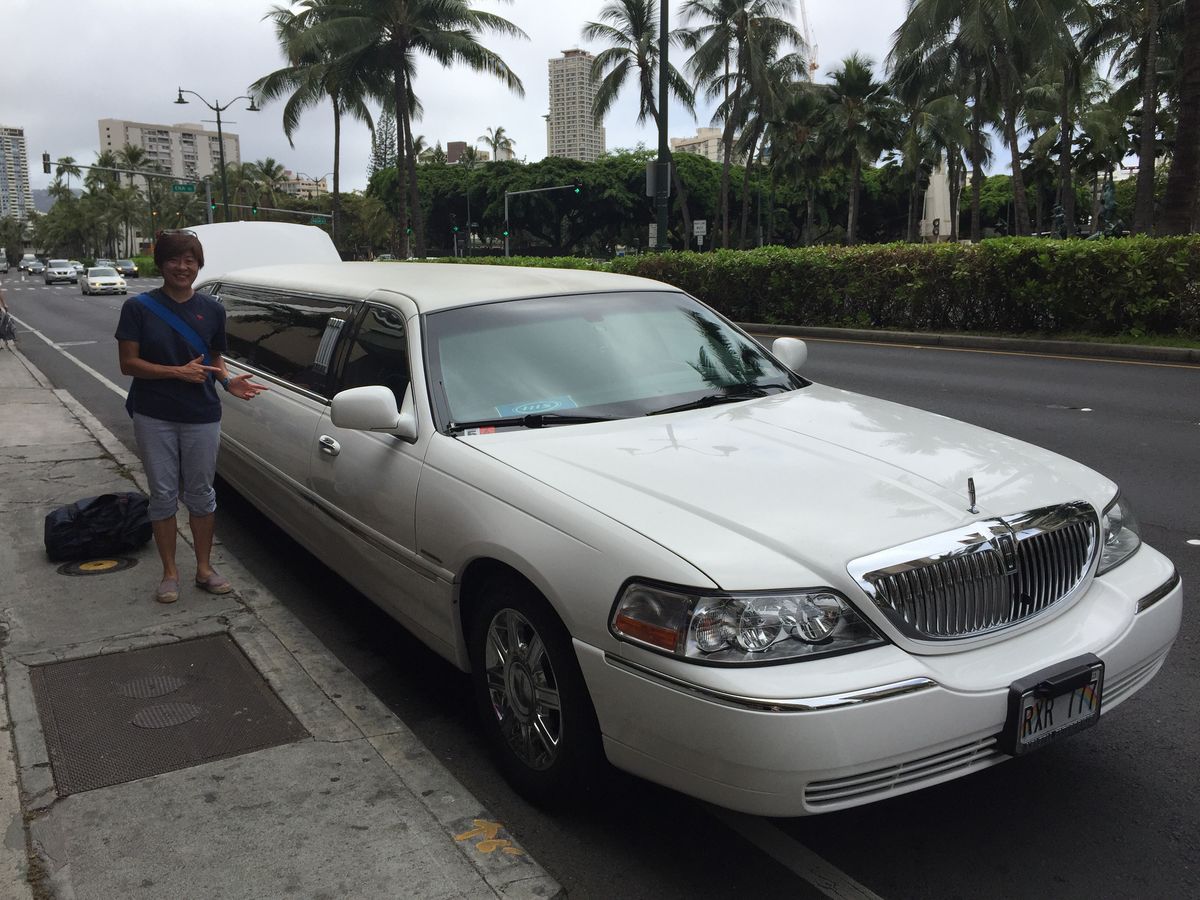 さて、時間になってもお迎えが来ず、10分が過ぎた、「15分以上待っても来なかったら事務所に連絡ください」という記載があったからもう少しかな?と思った頃、なんとリムジンがお迎えに来てくれました。配車の都合だと思いますが、思わぬサプライズに、ただの送迎が旅のよい思い出の1ページとなりました。