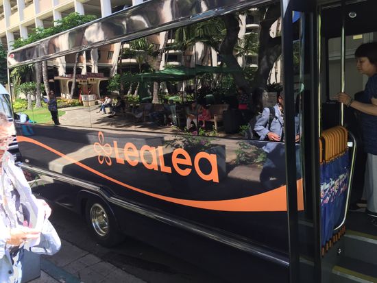 いつもハワイに来ると、ホテルにどうして行こうかよく迷う。ツアーではないと、送り迎えは無いのでタクシーかシャトルを利用するが結構高くつく。大体タクシーで50ドル、シャトルでも40ドルはかかる。しかし今回はこれを利用!!。タクシーの約半分で済んだ。帰りも当然予約済みです。ハワイに来たらこれはお得ですね!!