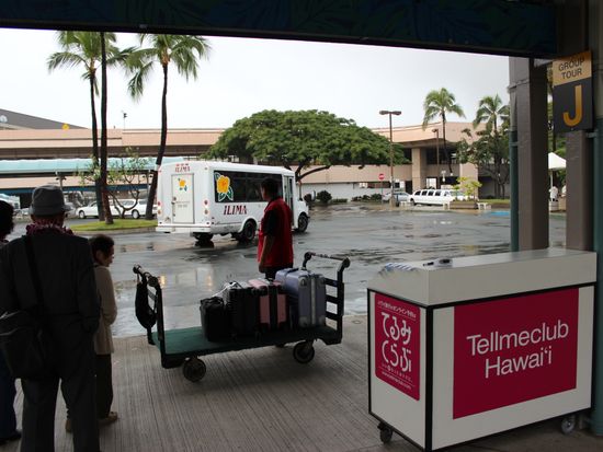 ホノルル空港出口のHISカウンターで予約書類を渡し、スムーズに