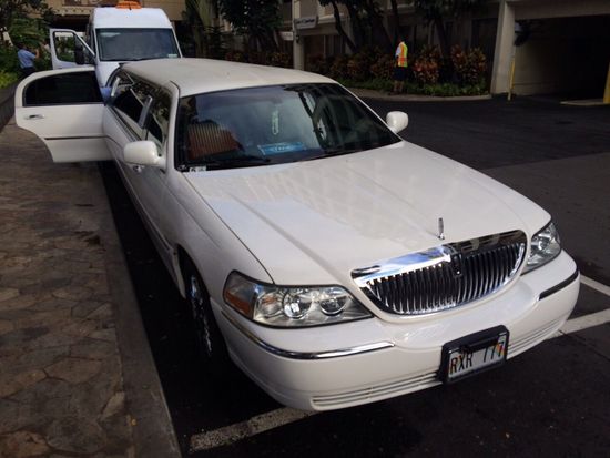 ピックアップの時間もぴったりだったし、白いロングタイプのリムジンでのお迎えでした!