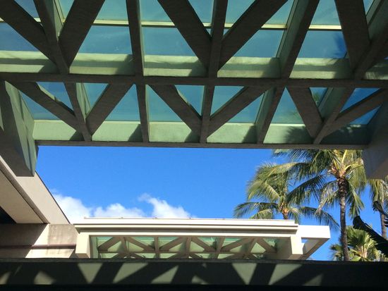 ホノルル空港につくと誘導する人がいるので、誘導に従っていくとHISの受付に到着しました。受付を済ませて券をもらうと、エスカレータに乗って別の受付までいき券を渡し、待っているとシャトルバスが来ました。乗り合いなので時間がかかると書いてありましたが、大型のシャトルで乗ったのは2組だけ。30分ほどでホテルに到着しました。運転手も陽気な方で、ここがおいしいレストランだよとかいろいろおしえてくれました。もちろんチップも不要でした。いつもは込んでいてホテルに着くまで時間がかかるのかも知れませんが、今回はとても早く快適でした。