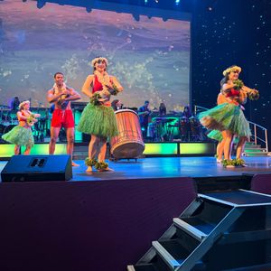 これは、ショッピングプラザの最上階にある大きく快適なアンフィシアターで行われる非伝統的なショーです。ショーは、1920年のハワイの土地と人々に関する短い歴史的ビデオで始まり、パフォーマンスの残りの部分のタイムラインを設定します。ショーは開始から終了まで約1時間10分で、私の意見ではちょうど良い長さです。