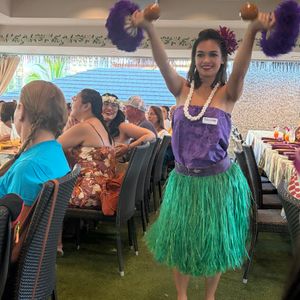 食事の時ウクレレ生演奏でリクエストにも応えて頂き、またフラやフラレッスンなど盛りだくさんで本当に楽しいひと時でした。