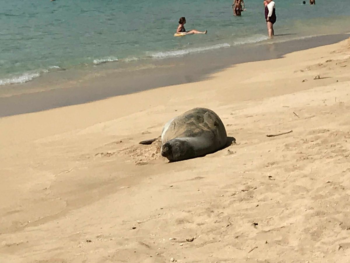 ハワイアンモンクアザラシが日向ぼっこをしにちょうど目の前に