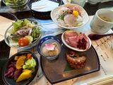 写真の料理のあとに揚げたての天ぷらが何種類もでてきて、おうどんや炊き込みご飯、フルーツまでも。大満足でした。