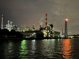 工場には詳しくないのですが、工場夜景には興味があって参加しました。かなり遠くからでも煌々と海面を照らすエネオスのフレアスタックが大迫力でした。東亜石油の紫とオレンジの二色のフレアスタックもかっこよくてその一体の工場夜景と合わせてとても美しかったです。