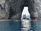 二人乗りのカヤックで一生懸命漕ぎます。当たり前ですが海だから波はそれなりにあって、ちょっと高めの波が来た時は転覆しないかと緊張しました。岩と岩の間を通り抜ける時が一番緊張しました。スリルがあって楽しかったです。