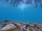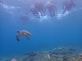 「高確率でウミガメに出会える」は本当でした!!担当のガイドさんはウミガメに遭遇できるポイントや生態を熟知しており、海底で休んでいるウミガメを見つけて、ウミガメが呼吸をするために海面に顔を出すタイミングを見計らって、事前の説明や写真撮影など、うまく対応してくれました。