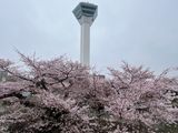 桜は満開で津軽海峡と桜のコラボもよし