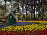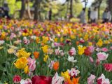 また、その日はチューリップも見ごろで、オランダのキューケンホフ公園の造園にも携わった方の協力で作られたチューリップ庭園では、色とりどりの品種が違う花々にうっとりしました。犬を連れた方々も多くいらっしゃり、中にはピンクのドレスに飾られた犬とチューリップの撮影をされている方も、、、。癒されました。
