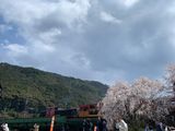 トロッコ列車は、嵯峨駅から亀岡駅までを、保津峡の渓谷美を眺めながら7.3kmの道のりです。途中、渓谷を下る船へ手を振ったりしながら、桜を楽しみました。リッチ号ではありませんでしたが、窓を開けると気持ちの良い爽快な風を感じることができました。