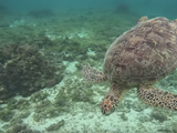 驚いたことに、泳ぎ始めてまもなくウミガメに出会うことができ、その神々しい姿をこの目ではっきりと見られたのは本当に感動的でした。