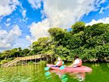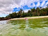 石垣島でマングローブカヤックとシュノーケリングを体験しました。カヤックでは、ガイドさんの丁寧な説明を聞きながら静かなマングローブ林を進み、自然の音に包まれてとても癒されました。普段なかなか見ることのできない植物や生き物も観察でき、石垣島ならではの魅力を感じられます。シュノーケリングでは、透明度の高い海に色とりどりの魚やサンゴが広がり、感動の連続でした。初心者でも安心して楽しめるようサポートがあり、写真も撮ってもらえて良い思い出になりました。私は鼻のところに水が浸入してきてしまうトラブルがあり不安だったので、ガイドさんの引っ張る浮き輪(?)につかまっていましたが、それでも充分に楽しめました。