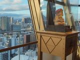 通天閣の中にはさまざまな展示があり、興味深かったです。エレベーターの中の少し時間にも乗っている人を楽しませる工夫がありました。