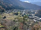 12時代は展望台行きバスの運転手さんの休憩時間とのことで、展望台遊歩道を歩きました。和田家裏を少し歩くと、分かってましたがずっと坂でした。前の人の歩くペースに合わせてしまい、20分位で頂上に到着。私も周りの人もダウンジャケット脱ぎました。空気はヒンヤリしてますが太陽の日差しが当たって、暑い。テレビで見たことある合掌造り集落の景色、間近で見てタイムスリプした感じでした。山の紅葉も綺麗でした。滑らないように坂を下り和田家を拝見し、集合時間まで探索しました。熊予防でしょうか?鈴を付けている方が多かったです。バスガイドさん親切で気軽に話して下さいました。写真も撮って頂きました。