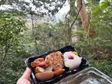 喫煙所の少ない観光地で緑に囲まれながらお弁当、ビールにタバコ