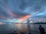 港に到着した時はまだ薄暗く、雲も多く遠くで雷もなっていましたが、準備が整い出港する頃には雲が赤く染まりだし、やがて雲の間から綺麗な朝焼けが見えてきました。