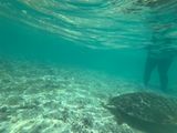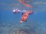 9歳、13歳、16歳、40歳、67歳の5人で参加しました。ウミガメに会いたいと思ってこちらのツアーに。あまり水が得意でない9歳の子供が楽しめるか心配でしたがきれいな魚がたくさんいて、カメと一緒に泳げて大興奮でした。またインストラクターさんが本当にいい方で息子がマスクに水が入った、足のフィンがとれた、寒いなど伝えると優しく対応して下さり最後まで楽しむ事ができました。今回載せている写真は全てインストラクターさんが撮って下さった写真です。5人の集合写真も何枚か撮って下さいました。海の底から太陽が入るよう撮ったシルエットの写真はとても気に入ってます。カメが水面に上がってきて息継ぎつる姿がとても可愛くみんなで可愛い!と盛り上がりました。数匹のカメに会えて良かったです。また参加したいと思ったツアーでした。