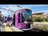 来場者数の約8割の足を支えるのが[嵐電]です。