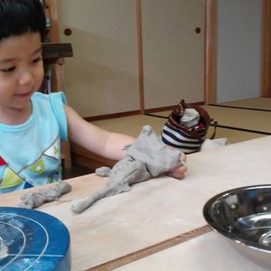 真夏の暑い日に息子と一緒に体験しました。前にも行った竹島水族館はめちゃくちゃに混んでいて大変でしたが、ここの陶芸はとても静かでのんびりした、素敵な日本家屋でした。はじめ、4才の息子はただ粘土をこねコネしているだけでしたが、その後陶芸家の方と一緒にコップのようなものを作っていました。少し息子には早かったみたいですが、ただ楽しいだけのアクティビティーもありですがこうゆう日本文化に触れるアクティビティーは子供にとっても良かったです。陶芸体験の後は、待庵を模した和室で抹茶と和菓子をいただきました。先生もとても気さくな方で楽しく陶芸をすることをできました。ちなみに焼きあがるまで1か月半から2か月ぐらいかかるそうです。夏休みの自由研究にはちょっと間に合わないかな。