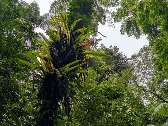 歩きながらも、見逃してしまいそうな木や草や着生植物などを丁寧に教えてもらいました。鳥の声やアカゲラのドラミングを聞きながら歩き、森を満喫。ヒカゲヘゴの群落で折り返しました。奄美地方特有の植物や本州にもある植物が生い茂る森の緑が本当にきれいでした。