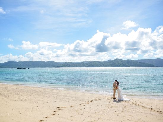 青い海、空、白い雲の世界でおふたりの人生の素晴らしい瞬間を形に残します。