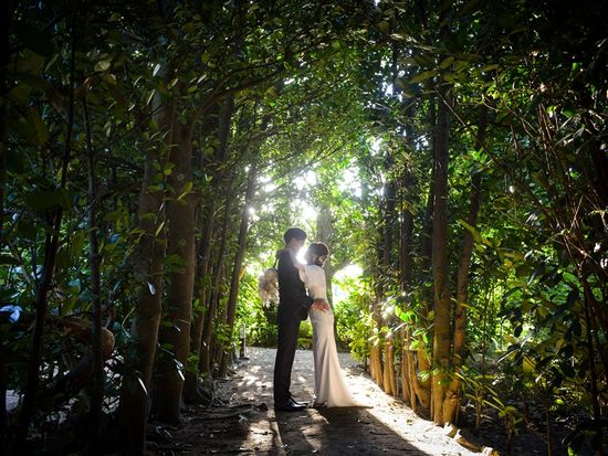 奄美大島の美しい景色の中で、ウェディングフォト撮影。
