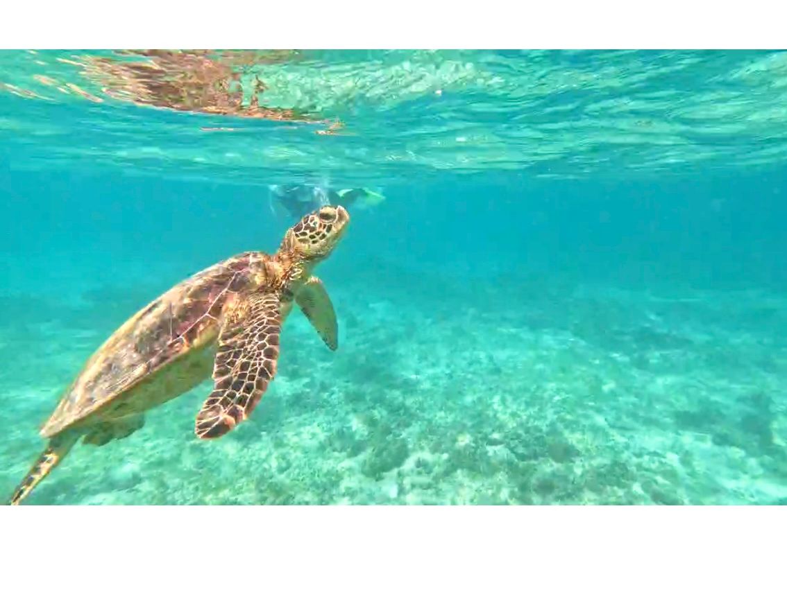 クールなガイドHさんは、知識も豊富で運転やカヌー、シュノーケリングもプロフェッショナルでした。自然のウミガメをこんなに近くで長時間見れたのは、人生で初めてで、感動しました。息子(10歳)はシュノーケリング2回目で上手くできず、すぐにギブアップしてしまいましたが、ウミガメとの動画を撮って下さっていたことに、とても感謝しています。最後無理を言ってスーパーにも連れてって下さり、ありがとうございました。