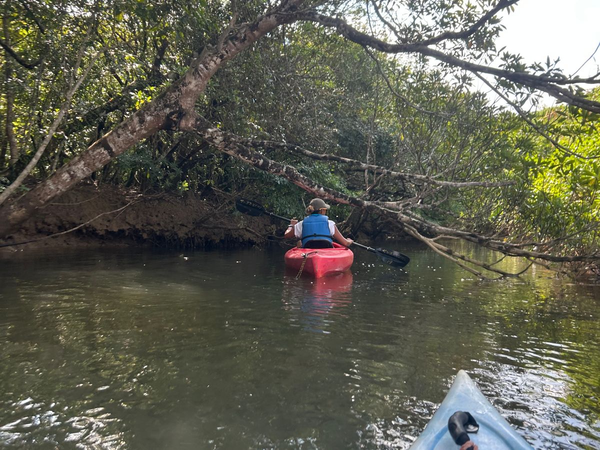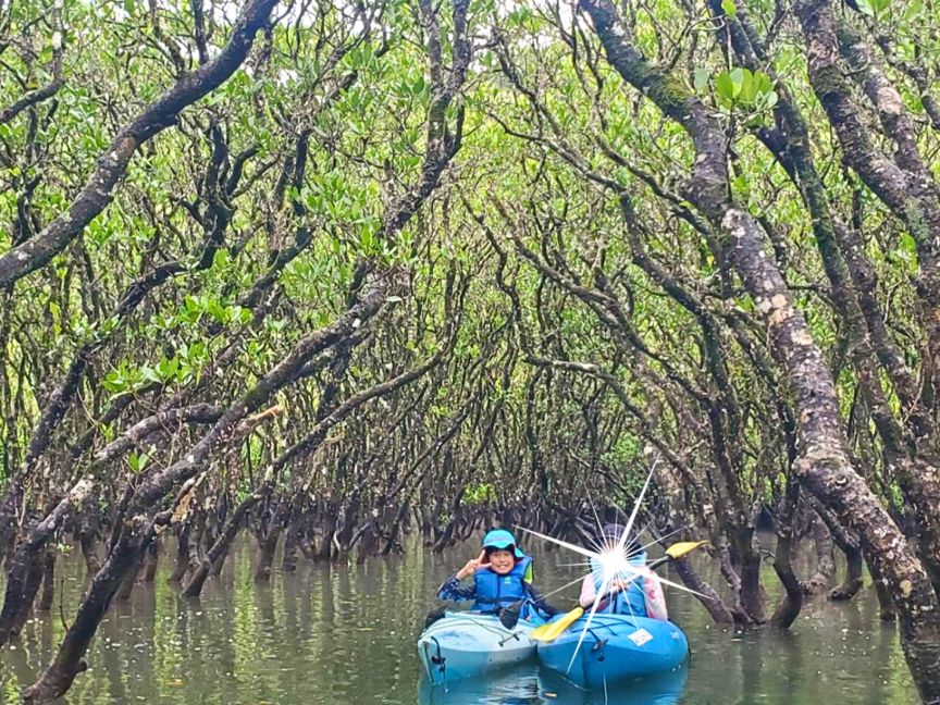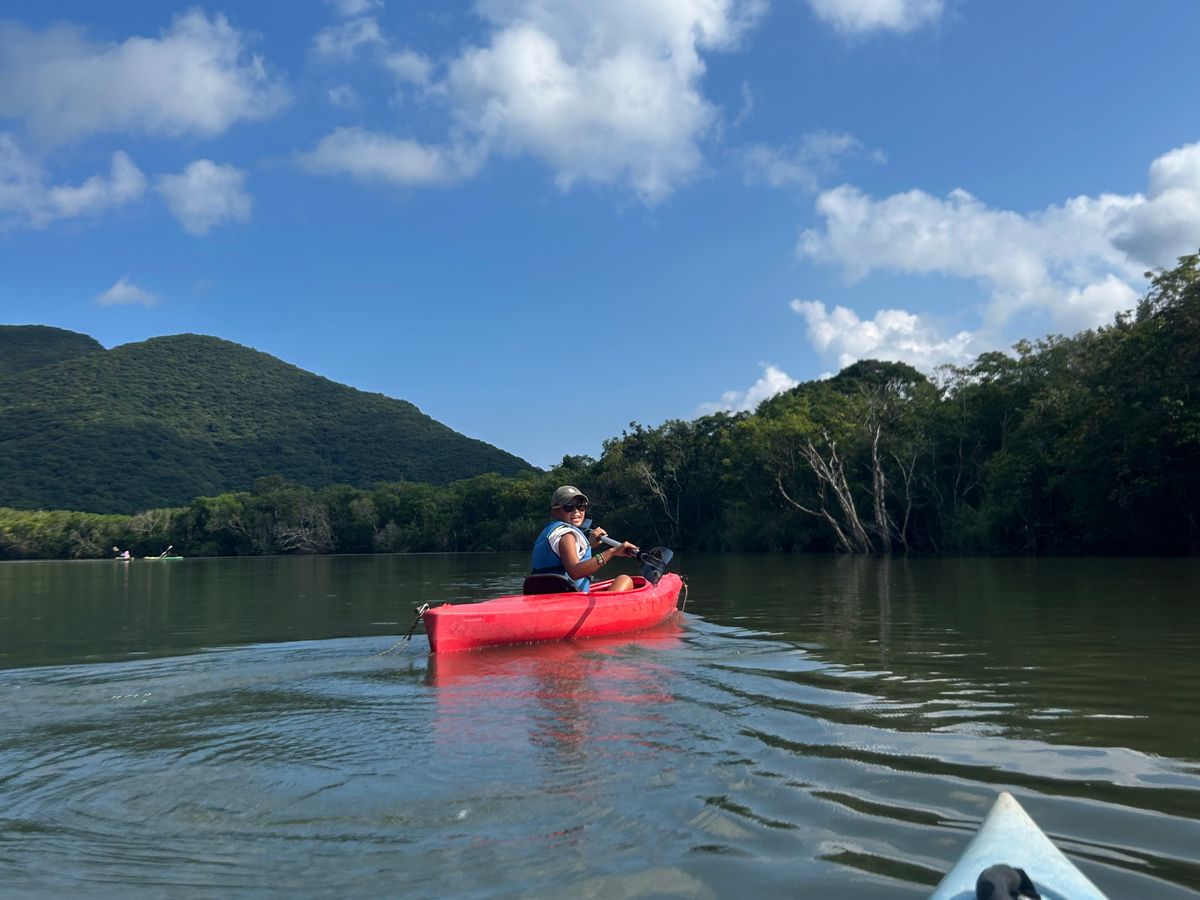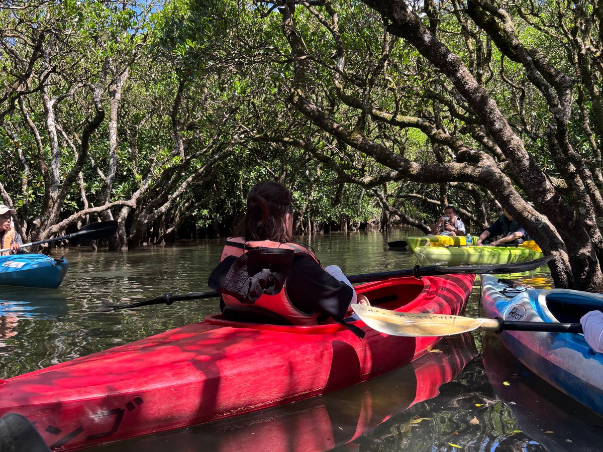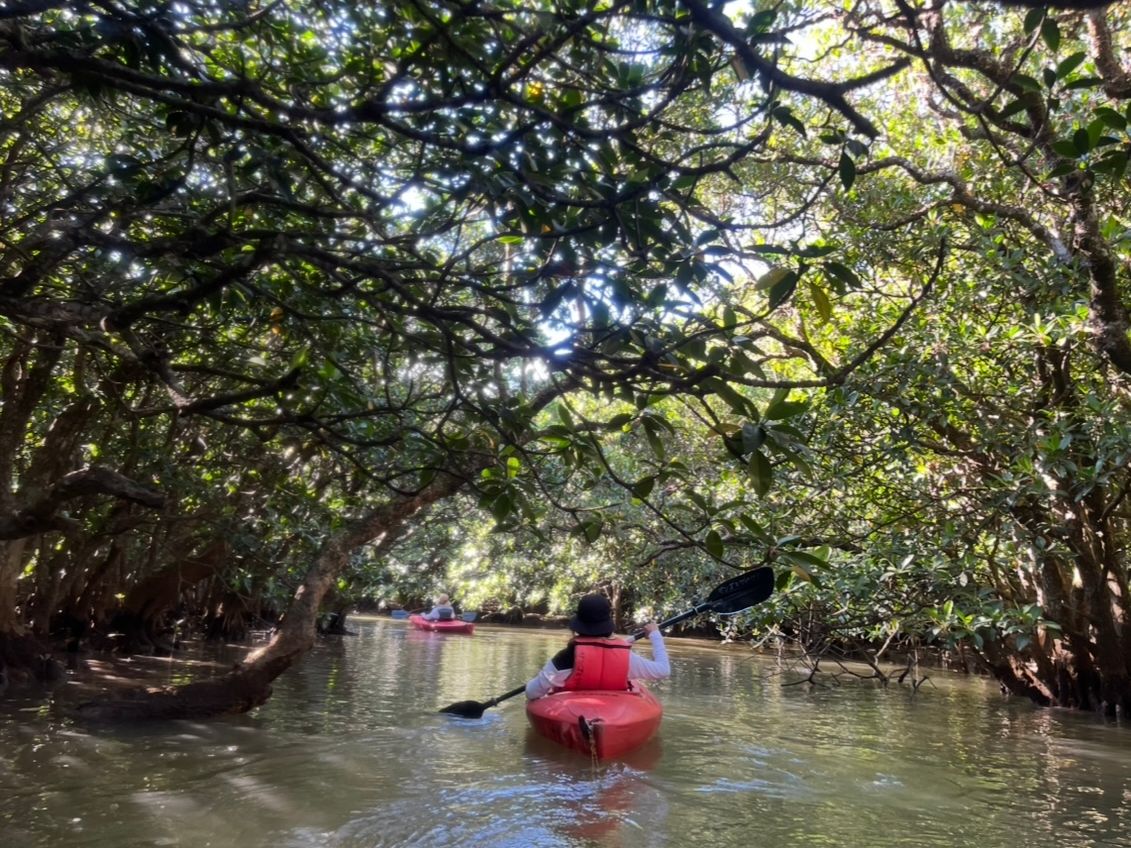 マングローブカヌーは満潮の時間帯に合わせるということで、満潮の方が楽しいと思っていたので良かったです。天気が良く日差しが強かったですが、広大な景色の中では悠々と、狭いマングローブのトンネルは何度もぶつかりながら、約90分間笑いが絶えず楽しかったです。