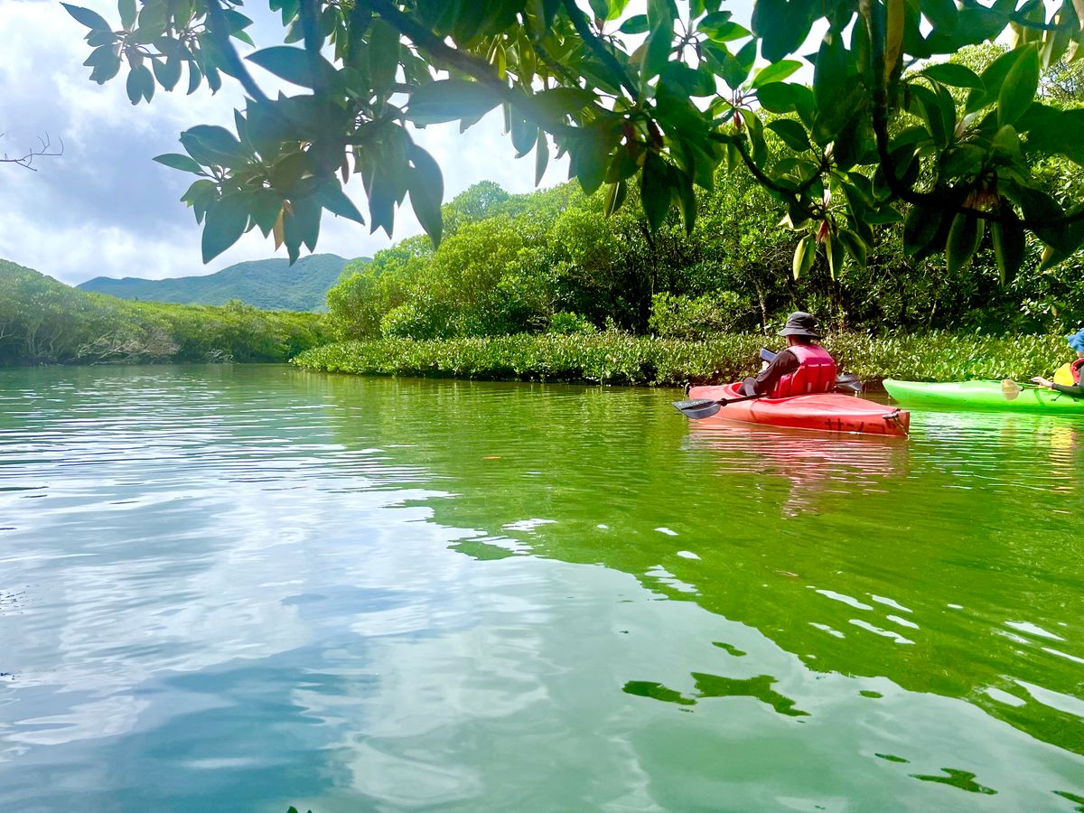午前金作原、午後カヌーでした。金作原は、ガイドの野間さん(だったかと…)の生き物を見つけるスキルが高すぎてびっくりしました。おかげで固有生物を沢山見ることができ、植物の話も面白かったです。カヌーはここでしか見られない景色がみれます。狭いマングローブ道をくぐったりと冒険心も非常にくすぐられるアクティビティでした。最後の方は腕の筋肉が悲鳴をあげていましたが笑、それも含め全身で奄美を楽しめるツアーでした。またぜひ参加させてもらいたいです。