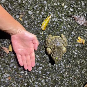 10kmのスピードでドアを開けてライトで照らしながらドキドキしてると、お姉さんがすぐに見つけてくれて親子のクロウサギとラストにオットンカエルも見れました!