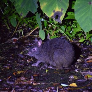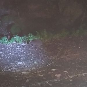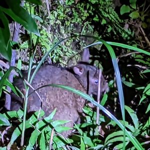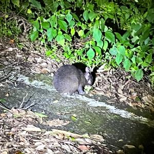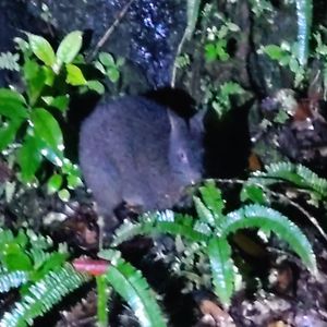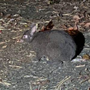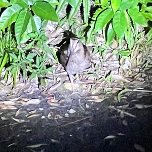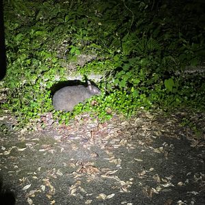スコールのような雨が降ったあとにナイトツアーに!入ってすぐに黒うさぎに会ったよ。少し動いて頭を葉っぱに隠して隠れたつもりがお尻が丸見えで、