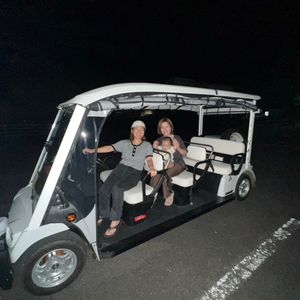 電気自動車でドアもなく、車庫も低く、奄美の夜を散歩しているみたいでした。