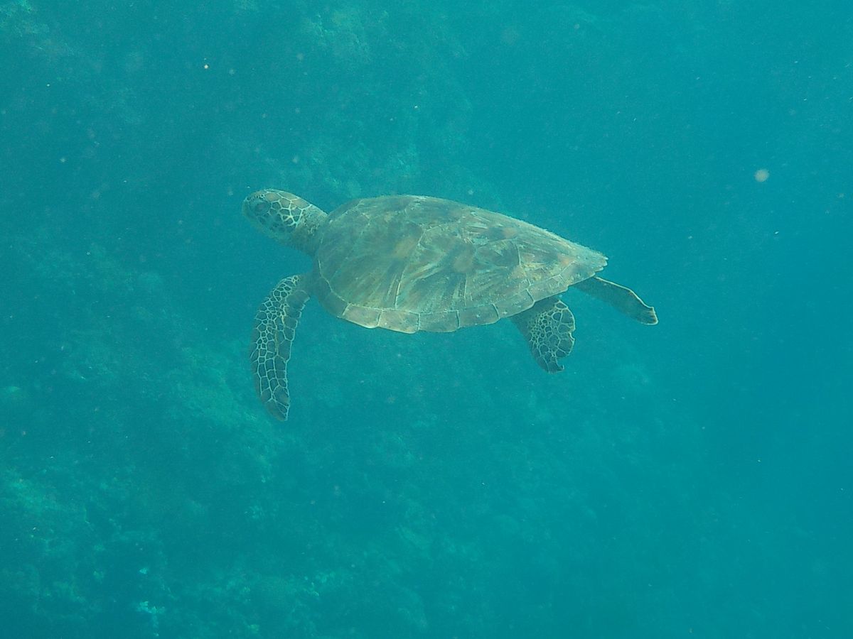 キレイな魚を見ながら泳いでいると、ウミガメの姿が!!
