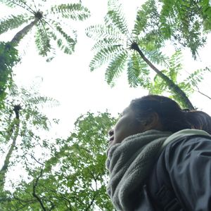 ジュラシックパークに出てくるようなヒカゲヘゴやカシの板根も珍しかったのですが、ガイドさんと一緒に耳を澄ましてキツツキの木をつつく音が聴けたのはラッキーでした。