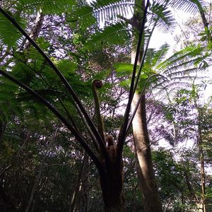 ヒカゲヘゴや見たことない大きな植物を教えてもらい、キラキラと日が射す山道を散歩しました。