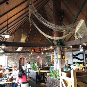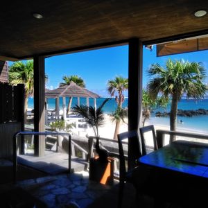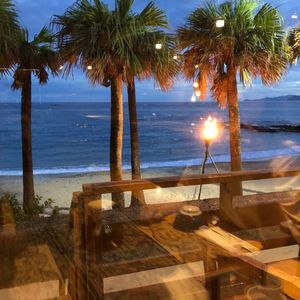 内装も南国風に凝っていて外の景色も綺麗な浜辺にたいまつが置かれており雰囲気抜群でした!